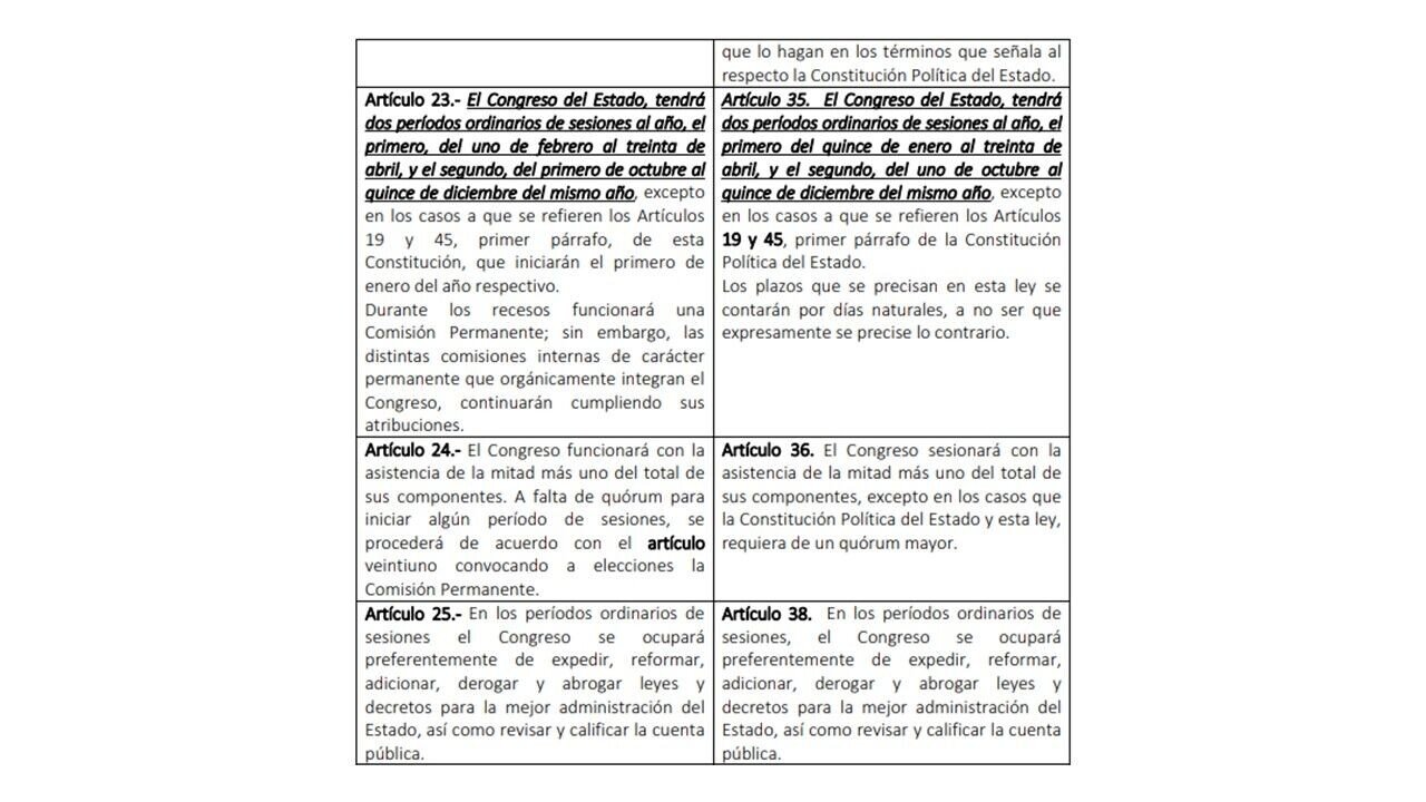 La Junta de Coordinación Política propondrá establecer el artículo 65[12] de la Ley Orgánica del Poder Legislativo, contemplando 25 comisiones permanentes [13]: