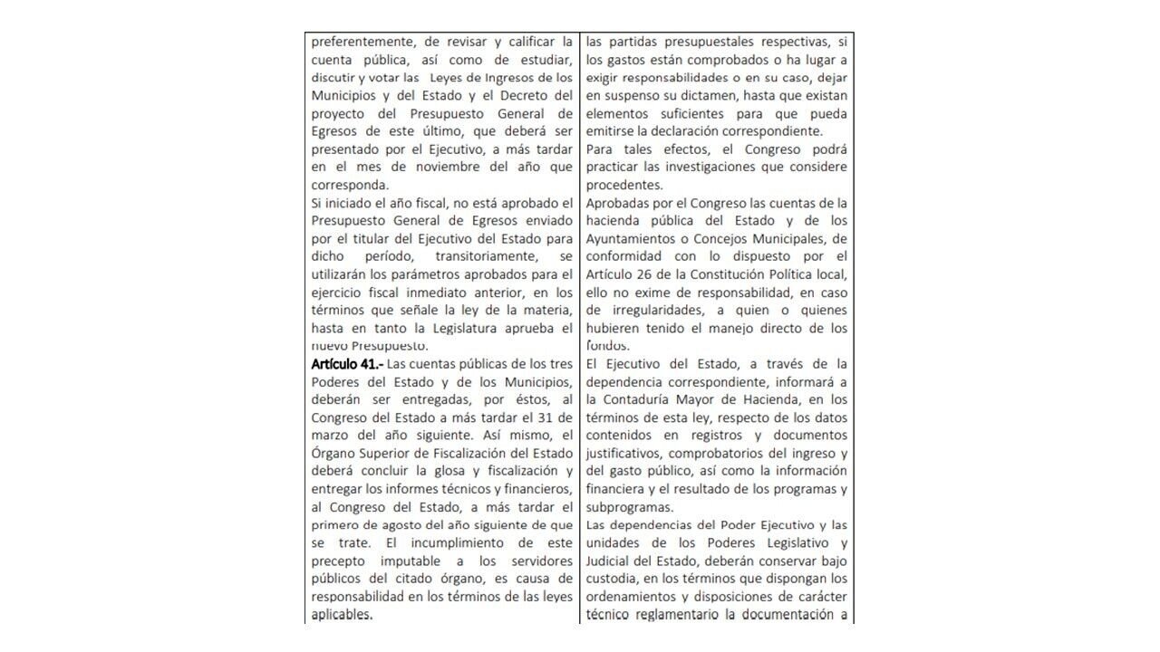 la Ley Orgánica del Poder Legislativo del Estado de Tabasco