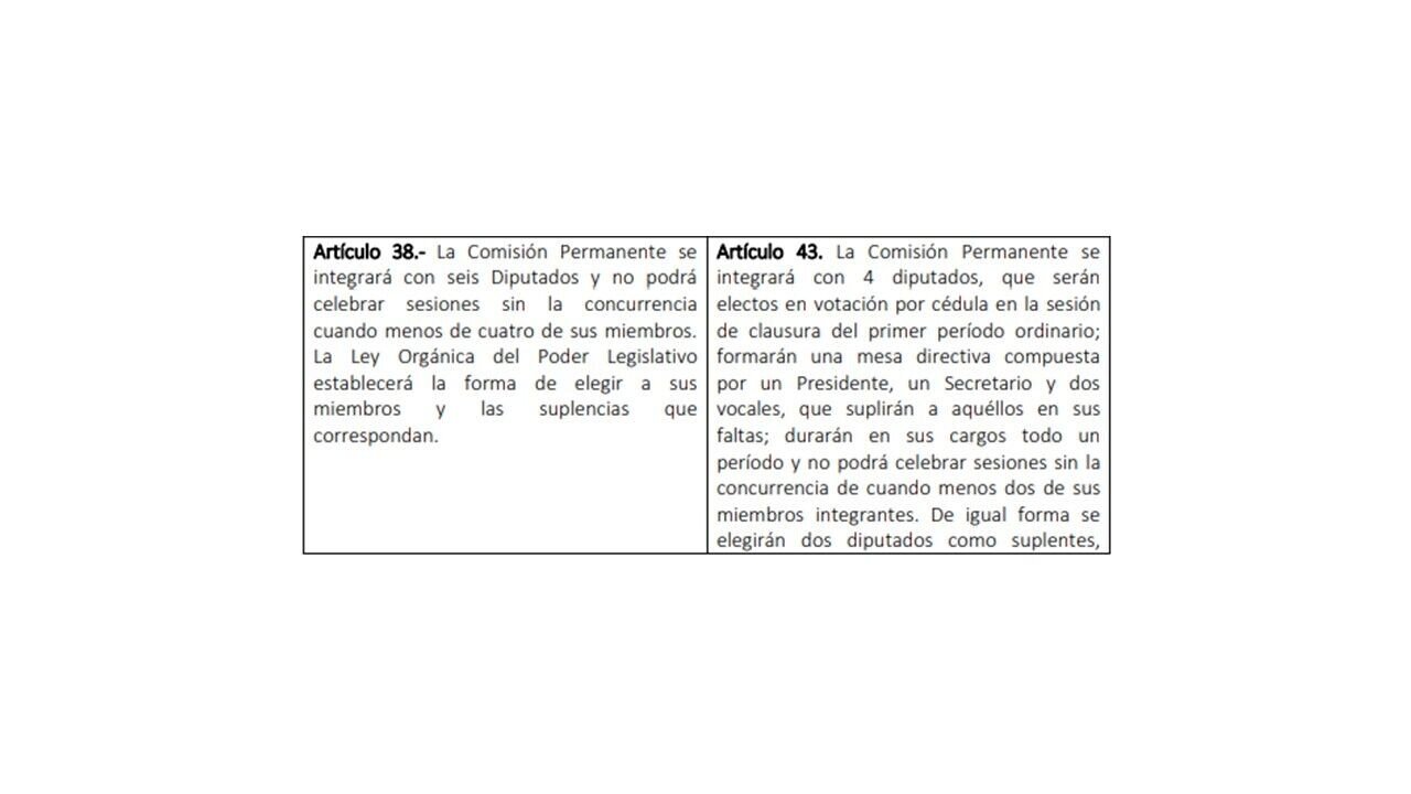 Comisión permanente: Es el órgano del Congreso del Estado, que durante el periodo de receso desempeña las atribuciones que le señala la Constitución Política, Ley Orgánica y Reglamento.