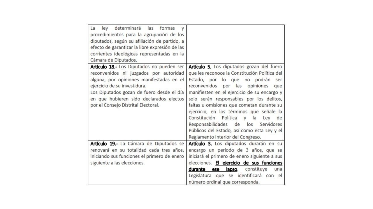 8. Por analogía o equiparación el marco jurídico del Honorable Congreso de la Unión, es decir, leyes orgánicas y, Cámaras de Diputados y Senadores.