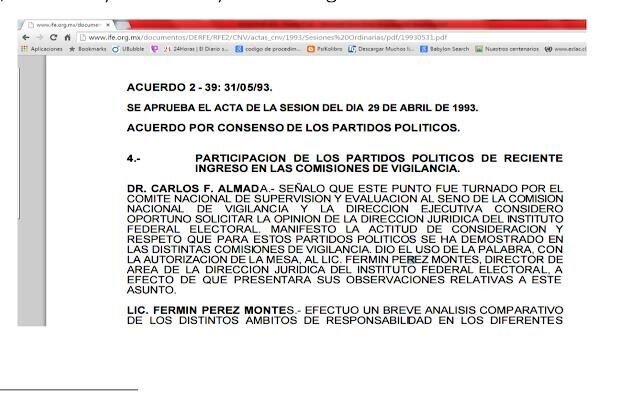 5. ¿Por qué no desmintió Fermín Pérez Montes ante el IFE[2] hoy INE, Senado de la República[3] o en el Encuentro de Diputados en el 2012 que no era ni licenciado en derecho ni maestro del Cide? El 26 de febrero de 2007, en calidad de licenciado organizó el evento La Pregunta Parlamentaria. El 25 de julio de 1995 firmó el acta de sesión de la Junta General Ejecutiva del IFE, y el 31 de mayo de 1993, 11 de marzo de 1996, 29 de mayo de 1996 y el 31 de agosto de 1996 lo mismo.