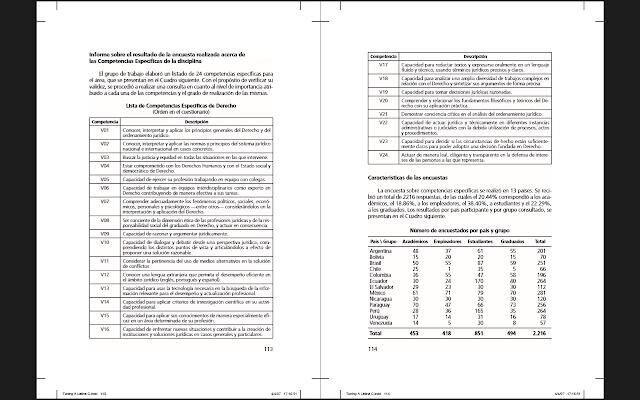 Para el desempeño de las funciones públicas y privadas, deben considerarse las competencias y habilidades reconocidas para la profesión de abogados, que han sido desglosadas por un cuerpo colegiado internacional y multidisciplinario, vinculando la educación con las fuerzas productivas. El acuerdo educativo, define:
